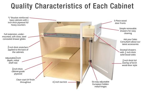 RTA cabinets are build with the same anatomy as assembled cabinets.